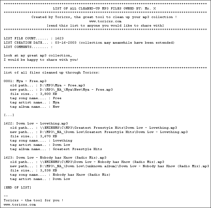 Besidesthe cleaning-function Toricxs has also two features that makes purchasing mp3 files easier, that is the ‘LAN-Grabbing’ and the Music List File.