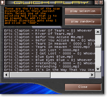Imagine you want to share mp3 files, for instance with your friend in an other country. He or she wants to have some special songs, but does not know if you are able to serve them (if you even own them). To make her happy you can send her the Music List File. This file contains information about your music files, like the name, the size, artist, song name and much more. Furthermore you can include a greetings-text or self-made sharing rules. Three formats are available: txt, html and mdb. Here’s an example how the file could look like:
