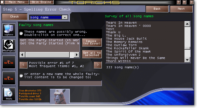 With Toricxs you can even check your song- and artist names for spelling errors, like you can see in the following example (more info in the help):